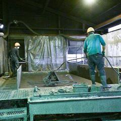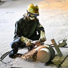 ショットブラストは製品にショット玉を当てて付着している砂や塗型を落とす作業です。仕上げ作業は、製品に残っている湯道、バリ等を除去する作業です。